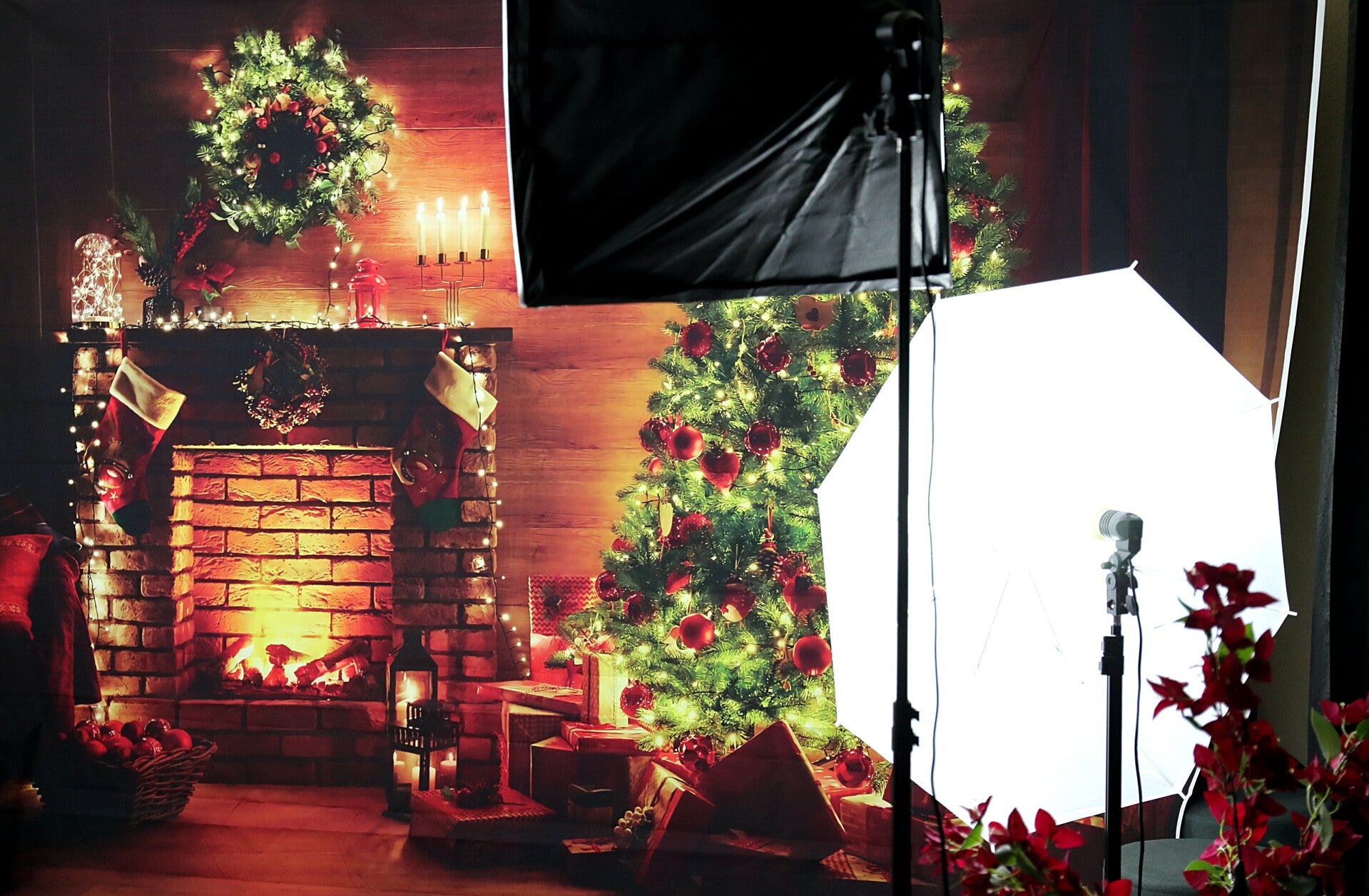 Décor de Noël et ambiance magique pour des photos en studio pleines de chaleur et d’émotions, parfaites pour des souvenirs en famille ou des cadeaux personnalisés.